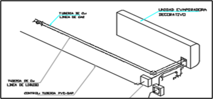 Detalle de instalación de equipos. Unidad evaporadora tipo Cassette.